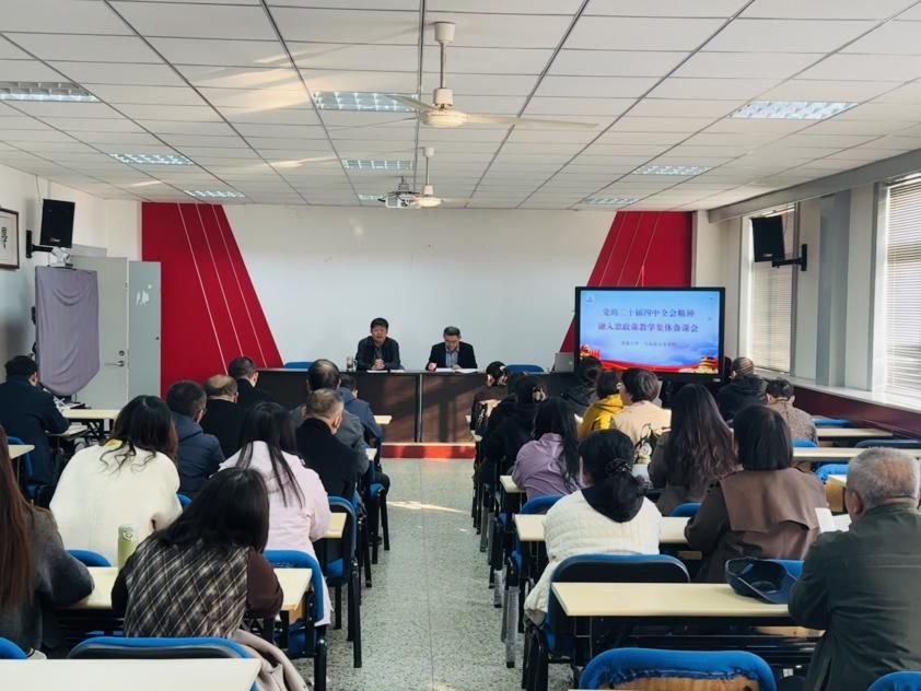 在大会议室隆重召开专题集体备课会。学院党委书记刘颖超主持会议,院长杨立志对党的二十届四中全会公报进行系统解读,全体思政课教师参加会议并展开深入研讨。